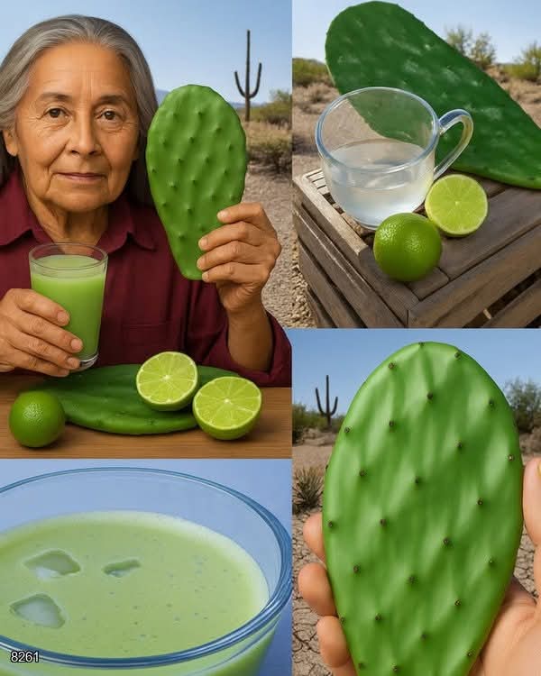 The images before you tell a compelling story rooted in traditional desert wisdom. They feature an indigenous woman, a symbol of generational knowledge, holding a glass of bright green juice and the source of its power: the Nopal Cactus Pad (also known as Prickly Pear). Flanked by fresh limes and set against the stark, challenging desert environment, this visual strongly suggests a potent, two-ingredient remedy passed down by a traditional healer, specifically targeting profound health issues like high blood sugar and systemic inflammation.